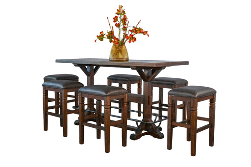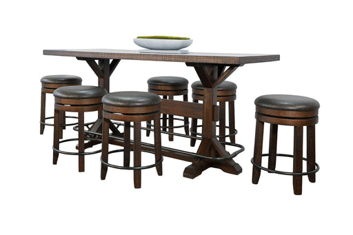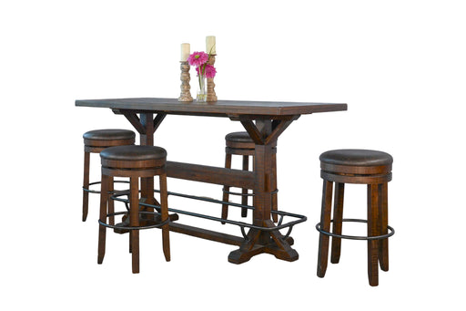 This Homestead pub table was built with mahogany and mindi solids and veneers. Its design suggests contemporary with industrial trades and its meta...
