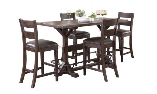 Create a warm and inviting dining space with this 5-piece rustic trestle dining set. Featuring a solid wood trestle table and four matching ladderb...