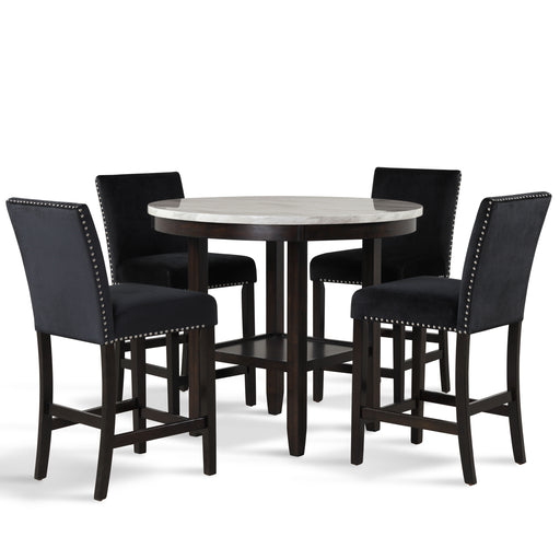 Bring contemporary elegance to your dining space with this beautifully designed dining group. The round table features a striking two-tone finish w...