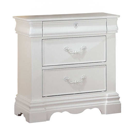 ACMEDrawer: Center Wooden Glide, Dovetail Included, Felt-Lined Top Drawer Flora - Nightstand - White26.0"W x 17.0"D x 27.0"H - 49.0 lb Flora - Nightsta...