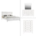 The Tamarack Bedroom Set is a stunning combination of durability and elegance. Crafted with solid poplar, basswood veneers, and eco-friendly manufactured wood, this set ensures strength and long-lasting durability. Its versatile transitional design seamlessly blends contemporary clean lines with classic paneled detailing, perfectly merging modern and traditional aesthetics. The sleek finish exudes sophistication and modernity, enhancing any decor style with a touch of elegance. Enjoy the quality drawer construction with smooth operation, side-mounted glides, and the durability of English dovetail joinery on both the front and back. The fully finished drawers provide snag-free storage, while the felt-lined top drawers protect your delicates. The premium low-distortion glass mirror provides a true and clear reflection, adding a touch of luxury to your space. This set is an exceptional choice for those who demand quality, style, and functionality in their bedroom furniture. Transform your bedroom into a stylish sanctuary with the Tamarack Wood Bedroom Set.