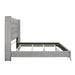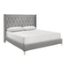 The Huxley Upholstered Bed in Gray combines contemporary glam with durable construction for a stylish and comfortable bedroom centerpiece. This set includes a headboard, footboard, two side rails, and a slat kit, all crafted from manufactured woods and eco-friendly decorative laminate for long-lasting use. The bed features clean lines and a crystal button-tufted headboard with silver studded trim, offering a touch of luxury and comfort. Its inviting finish provides a sleek, modern look that complements contemporary interiors, creating a sophisticated and calming atmosphere. The neutral tone pairs beautifully with the metallic accents and luxurious upholstered headboard, adding a touch of glamour and cohesion to the overall design. The 100% polyester velvet fabric exudes elegance with its soft feel and plush padding, ensuring maximum comfort.