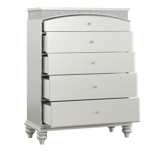 ACMEVersailles - Chest - Antique Platinum FinishProduct Features 5 Drawer Drawer: Side Metal Glide Drawer (3 Ball Bearing, Full Ext.), English Back Dov...