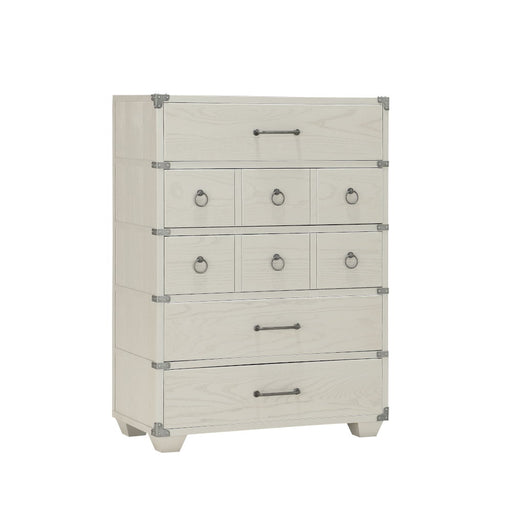 ACMEChantelle - Chest - Pearl White FinishProduct Features 5 Drawer Wooden Top Casegood Drawer: Side Metal Glide Drawer (Full Ext.), Dovetail French Fr...