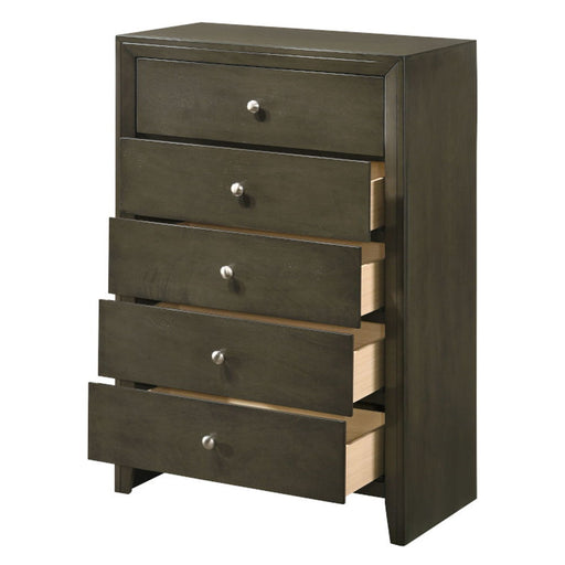 ACMESoteris - Chest - Antique GrayProduct Features 5 Drawer Drawer: Beveled Fronts, Glide Center Metal (Kenlin, 8" Ext. ), Dovetail English Front &...