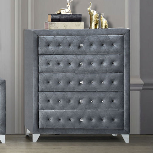 ACMEValda - Chest - Light Gray FabricProduct Features 5 Drawer Padded: Light Gray Fabric & Black Welt Trim Drawer: GLIDE Side Metal, NO Dovetail, N...