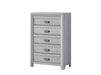 This bedroom set is the embodiment of understated sophistication, featuring a neutral finish that complements its clean and contemporary design. The robust bed frame anchors the room with a sense of sturdiness and style. Accompanying the bed are coordinating pieces: a dresser with a large mirror, a tall chest for additional storage, and a nightstand to keep essentials within reach. Each piece is crafted with sleek, straight lines and fitted with rectangular cup pulls, creating a cohesive look that’s both modern and timeless.
