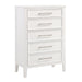 The Andover Five Drawer Wood Chest combines durability, functionality, and modern rustic style, making it an essential piece for any bedroom. Expertly crafted from solid Rubberwood, manufactured woods, and wood veneers, this chest is built to last while highlighting the natural beauty of real wood. The rich finish is the result of a meticulous multi-step process that includes sand-throughs and white glazing, imparting a weathered yet refined appeal that enhances the wood's natural grains and unique characteristics. The Andover chest’s clean lines and cohesive design are complemented by sleek, elongated metallic handles that add a sophisticated contrast to the dark wood finish. Framed drawer fronts add depth and dimension, while the sturdy block-style legs ensure a solid foundation that underscores the chest's robust and enduring structure. The drawers glide smoothly on Kenlin drawer glides, ensuring reliable operation, and feature dovetail joinery, reflecting superior craftsmanship and lasting quality. This chest offers ample storage space while enhancing your bedroom's aesthetic with its timeless and versatile design.