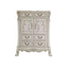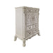 The Dresden II chest is exclusively designed and filled with a romantic spirit that will transport you to regal times. The piece is crafted and inspired by the luxurious designs of the past, this gorgeous piece features five drawers with French dovetail construction with felt lining and a center double-door cabinet space. Expertly detailed, this gorgeous chest highlights elaborate carvings on its frame. This chest is finished in an elegant bone white with hand-brushed silver accents and sits on elegant claw feet.