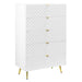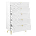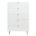 The Gaines Collection is a glamorous and sophisticated grouping that adds a chic style to any room. The diagonal line design adds visual interest and texture, making each piece stylish. With a variety of storage options to meet your needs.