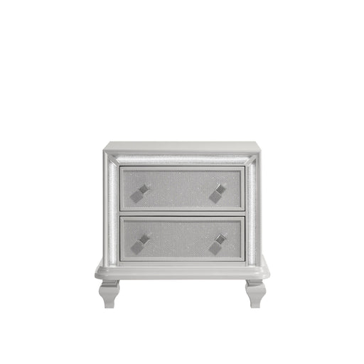 ACMEEsther - Nightstand - White / SilverProduct Features Drawer: Side Metal GLIDE Drawer, Drawer Extension 3/4, Safety Stop Included Metal Knob High Gl...
