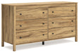This dresser puts the dream of a casual bedroom retreat beautifully within reach. A warm light brown finish over replicated hickory grain exudes a homey vibe. The smooth-gliding drawers are packed with storage possibilities. It’s a simply relaxed way to achieve the look you want to wake up to every morning.