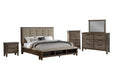 The Cagney Wood Bedroom Set is a masterful fusion of timeless elegance, meticulous craftsmanship, and practical functionality, designed to transform your bedroom into a sophisticated retreat. All constructed from solid Rubberwood, premium engineered woods, and authentic Acacia wood veneers. The multi-step finish in rich tones is hand-rubbed to perfection, with a delicate light glaze that highlights the intricate, aged details, evoking a sense of history and refined craftsmanship. The plush, button-tufted headboard, upholstered in complementary greige fabric, extends seamlessly to the side rails and bench footboard, all cushioned for a cohesive and inviting look. The set provides abundant storage with dovetailed drawers in the dresser and chest, gliding smoothly on full-extension, ball-bearing glides, while the footboard’s spacious cubbies offer convenient storage for books, blankets, and other essentials. Thoughtful details like velvet-lined top drawers and distinctive elongated drawer pulls add a unique flair that beautifully complements the set’s rustic elegance. Combining style, durability, and functionality, the Cagney collection is a truly exceptional investment for any home.