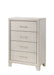This elegant bedroom collection presents a sophisticated ensemble perfect for creating a refined modern aesthetic in your sleeping quarters. The suite features a sleek, minimalist design with crisp, clean lines and a rich finish that exudes contemporary charm. Anchoring the set is a robust panel bed with a prominent headboard, promising a sturdy and stylish centerpiece. Flanking the bed are complementary case pieces, offering ample storage with their smooth-gliding drawers accented with chic silver-toned hardware.