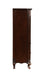 The Constantine Five Drawer Chest by Royal Classics is a masterful blend of elegance and functionality. This vertical chest, finished in rich Cherry, is crafted from a blend of Solid Pine and Fancy Face Birch Veneers, ensuring heirloom quality and enduring beauty. The laborious multi-step finish enhances the natural beauty of the wood, while burnished gold tipping on the intricate carvings adds a luxurious touch. The French Traditional design, featuring elaborate 18th-century Rococo style ornamentation, brings a touch of regal elegance to your home. The chest's drawers are built to last with French and English Dovetail Joinery, rolling smoothly on full-extension glides and featuring finished interiors for snag-free storage. Sophisticated touches include bowfront drawers, book-matched veneers, and cabriole legs, completing the lavish design. This piece combines traditional style with modern comforts, offering velvet-lined top drawers, cedar-lined bottom drawers, ample drawer size, and roomy storage behind the doors. The Constantine Chest is an exquisite addition to any bedroom, harmonizing opulence with practicality.