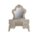 The Dresden II vanity desk is exclusively designed and filled with a romantic spirit that will transport you to regal times. The piece is crafted and inspired by the luxurious designs of the past, this gorgeous piece features five drawers with French dovetail construction with felt lining. Expertly detailed, this gorgeous vanity desk highlights elaborate carvings on its frame. This vanity desk is finished in an elegant bone white with hand-brushed silver accents and sits on elegant claw feet.