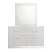 The Europa Mirror in white is a perfect blend of modern design and quality craftsmanship. This mirror features a sleek, sophisticated look with a bright white finish that adds to its glimmering appeal. Made from eco-friendly manufactured woods, it is assembled with durability in mind, and the surfaces are finished with a glossy white topcoat. The upscale design includes a low-distortion mirror encased in a tapered frame, adding a modern flair to any room. Choose the Europa Mirror to enhance your space with a touch of contemporary elegance and high-quality construction.
