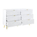 The Gaines Collection is a glamorous and sophisticated grouping that adds a chic style to any room. The white gloss finish and gold metal accents help to accentuate the clean lines of the pieces and add a pop of glamour. The diagonal line design adds visual interest and texture, making each piece stylish. With a variety of storage options to meet your needs.