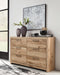 Inspired by natural beauty, refined to perfection. This dresser brings cozy outdoor vibes to your bedroom with its warm and inviting golden rustic finish. Handles in an antiqued gunmetal hue adorn the six drawers on its framed front, adding an industrial touch to the simple, streamlined design.