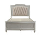 The Kaitlyn bed provides a commanding presence in any room. This contemporary storage bed features a channel tufted padded headboard and a low-profile footboard with storage drawers. Crafted with a glam look that is an ideal addition to any bedroom, the headboard is accented with LED lights and a crystal-like sparkling trim.