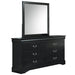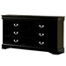 Features six drawers that provide ample space to store your clothing, bedding and linens. All drawers have brushed nicked metal hardware and center metal glides. This beautiful dresser will be the perfect complement from the most sophisticated to decor casual settings.