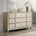 - Tufted Drawers: The front of the all drawers features a tufted design with diamond-shaped patterns, adding a textural element.