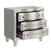 Introducing the Reflection Nightstand in Silver, expertly crafted from solid Pine and high-quality manufactured wood to ensure enduring strength and durability. Its glamorous matte silver finish exudes sophistication, accentuating the mirrored top and silver drawer pulls, adding a touch of elegance to any bedroom decor. Experience luxurious functionality with a mirrored top, bowfront drawers, sumptuous lavender velvet lining, picture frame moldings, and turned bun feet, seamlessly blending classic charm with modern flair. Inside, discover meticulous craftsmanship with English dovetail joinery, full extension drawer glides, finished interiors, and select velvet-lined drawers to safeguard delicate items. Enjoy extra upgrades such as the built-in USB charging port and cedar-lined bottom drawer, offering unparalleled convenience and lifestyle functionality. This nightstand is not just a piece of furniture—it's a marvel of design and practicality, destined to enhance your bedroom space with style and functionality.