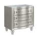 - Glamorous Matte Silver Finish: This luxurious finish not only adds a radiant touch of elegance but also beautifully complements the mirrored panels and shimmering silver drawer pulls, creating a refined and sophisticated look.