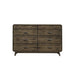 The Rex 8 Drawer Dresser combines style and functionality for your bedroom needs. This dresser includes eight spacious drawers, crafted from solid rubberwood, manufactured woods, and oak veneers for stability and longevity. Its classic mid-century modern style features a minimalist design with neutral tones, clean lines, rounded edges, and angled, tapered legs. The multi-step walnut brown finish, hand-rubbed with a clear topcoat, enhances the natural beauty of the wood grain. The drawers, constructed with dovetail joinery and full extension glides, ensure smooth operation and snag-free storage. The top two drawers are felt-lined, perfect for storing delicates, watches, and jewelry. This large dresser offers ample room for clothing, making it a practical and elegant addition to any bedroom.