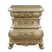 Intricately hollow carved design with romantic scrolling accent highlights this extraordinary style. The Seville Bedroom Collection creates opulence and drama in your room with the dazzling gold hue that enhances its detailed extravagance. Button tufted headboard and footboard add depth and a luxurious sense of comfort. Matching casegoods offer self-closing drawers with built-in safety stops and felt-lining. Show your confidence and make a bold statement in your personal space with the Seville Bedroom Collection.