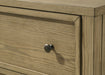 This bedroom set is a harmonious blend of rustic charm and modern simplicity, ideal for creating an inviting and warm atmosphere. The set features a stunning canopy bed as its centerpiece, which boasts a clean-lined frame and a natural wood finish that exudes understated elegance. The bed's headboard, with a gentle fabric inset, offers a soft contrast to the wood, providing a cozy backdrop for restful nights. Complementing the bed are a spacious dresser with a matching mirror and a convenient nightstand, each piece echoing the bed’s minimalist design and warm wood tones.