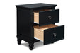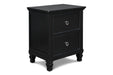 The Tamarack 2 Drawer Wood Nightstand combines durability with elegance. Built with solid poplar, basswood veneers, and eco-friendly manufactured wood, this nightstand ensures strength and long-lasting durability. Its versatile transitional design seamlessly blends contemporary clean lines with classic paneled detailing, creating a perfect harmony of modern and traditional aesthetics. The sleek black finish adds a touch of sophistication and modernity, enhancing the overall aesthetic and complementing any decor style. Quality drawer construction ensures smooth operation with side-mounted glides and the durability of English dovetail joinery on both the front and back, guaranteeing long-lasting use. Fully finished drawers provide snag-free storage, while the felt-lined top drawer protects your delicates. This nightstand is an excellent addition to any bedroom, offering both style and functionality.