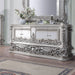 Characterized with button-tufted upholstery, intricate scrollwork, and lustrous finish, the Valkyrie Bedroom Collection provides the feeling of luxury and sophistication. Ornate carvings with floral scroll design on each piece boast extravagant silhouettes and dramatic style. Antique Platinum Finish paired with muted gray tone fills the collection with a noble and elegant flair. Felt-lined drawers feature a self-closing mechanism with built-in safety stops and keep items in place as you open and close the drawer. Give your interior a royal touch and classic look with the Valkyrie Bedroom Collection.