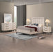 Experience the blend of minimalism and elegance with this chic bedroom ensemble. Crafted with a light and airy finish, it creates an inviting atmosphere while the sleek lines and subtle contrasts in color emphasize a modern aesthetic. Each piece showcases thoughtful craftsmanship with unique drawer pulls that add a touch of character. The gracefully arched headboard anchors the space, offering a serene focal point.