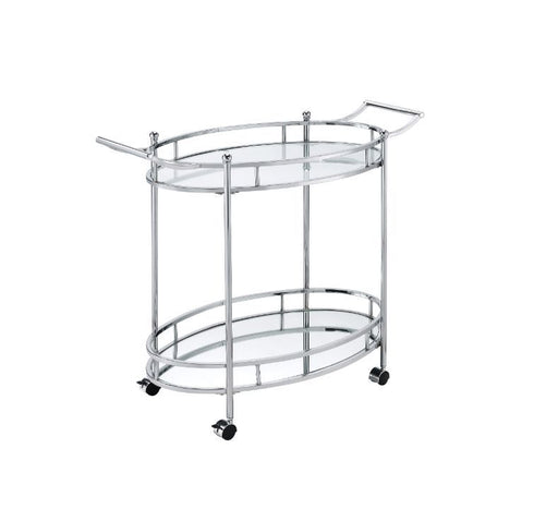 ACMEInyo - Serving Cart - Clear Glass & ChromeProduct Features KD Oval Serving Cart 3 Tier Shelf 5 mm Tempered Glass Case: 1Pc/1Ctn Finish: Clear G...