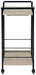 Display your favorite beverages with this rolling bar cart. Constructed of metal in a finish with wood grain effect melamine shelves, this cart blends easily with your existing living room aesthetic. A protective rail surrounds the shelves, keeping bottles and glasses from spilling. Lockable casters serve up drinks and snacks in style.