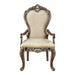 The Latisha armchairs bring comfort and elegant traditional style into your dining room. With plush seat cushions and padded backrests, dinner parties will surely last for hours. Against the antique oak, the floral moldings are highlighted with silver hand-brushed detailing on the legs and apron. They are upholstered with luxurious gray chenille fabric and finished with impressive nailhead trim.