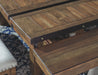 Made with Rubberwood solids and Acacia veneers. Casual rustic design with planked effect on table top. Table extends to fit 8 with two end leaves. Alternate seating available with the cushioned bench. Matching server offers plenty of storage options. Collection is finished in a distressed nutmeg brown color.