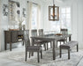 Hallanden - 6 Pc. - Extension Table, 4 Side Chairs, Bench - Black / Gray