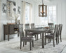 Hallanden - 8 Pc. - Extension Table, 6 Side Chairs, Server - Black / Gray
