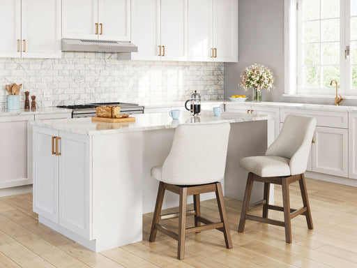 Signature Design by Ashley®This counter height swivel bar stool is the perfect blend of casual and contemporary styles. Its easy-clean Next-Gen Nuvella™ upholstery remains vi...