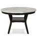 The 48” Round Celeste Dining Table is meticulously crafted for enduring quality with solid Rubberwood legs and durable manufactured wood components. The heat and water-resistant faux marble top, finished with a glossy coat, not only adds a touch of contemporary glamour but also ensures effortless cleaning and protection from daily wear. The sleek white surface with gray veining perfectly complements the deep espresso base, creating a modern ambiance for your space. Invest in this quality-built, heat, and water-resistant Celeste dining table to seamlessly blend style and practicality in your home.