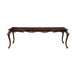 The Royal Classics Constantine Dining Table in cherry is a masterful blend of heirloom quality and timeless design, making it the perfect centerpiece for your dining room. Crafted from solid pine and premium fancy face birch veneers, this table is built to offer lasting beauty and durability for years to come. The meticulous multi-step finish enhances the natural grain of the wood, while burnished gold tipping highlights the intricate carvings, adding a luxurious touch. Inspired by 18th-century Rococo design, the table features ornate ornamentation and carvings that bring an air of regal elegance to your home. With banquet-style seating, the table easily extends from 77" to 97", offering generous space for large gatherings and creating the perfect setting for memorable family meals and special occasions. This dining table combines both beauty and practicality, making it a stunning addition to any home.