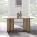 - Materials: Composite Wood With Travertine Pattern Paper, Metal, Fabric, Foam