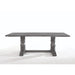 This delightful Leventis collection offers rustic elegance that will enhance your dining room experience. The carefully crafted rectangular table features a trestle base with turned pedestals all in a weathered gray finish. Complemented by classic dining chairs supported by solid wood legs and beautifully wrapped with linen-like upholstery that adds comfort and durability. Making this set the perfect addition to any dining area.