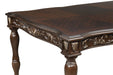 The Royal Classics Maximus Dining Table in cherry is a masterful blend of heirloom craftsmanship and timeless elegance. Meticulously crafted from solid poplar and premium birch veneers, this dining table is designed for enduring beauty and durability, ensuring it will be a treasured piece for years to come. The multi-step cherry finish enhances the rich wood grain, while delicately burnished gold tipping adds a luxurious touch to the intricate carvings. Inspired by Baroque and 18th-century Rococo design, the table's ornamentation brings a regal elegance and sophistication to any dining space. Effortlessly extendable from 76" to 96", the table provides spacious seating for up to 8 guests, making it ideal for large gatherings and family meals. Combining functionality with elegance, this table is perfect for creating memorable dining experiences.