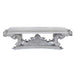 See the extravagant style and classical design all over the Valkyrie Dining Room Collection. Bold, intricate scrollwork accent is highlighted throughout each piece in this collection. Antique Platinum Finish paired with muted gray tone brings attention to its gorgeous details. Rectangular dining table showcases a timeless pedestal-style silhouette while matching chairs feature button-tufted upholstery for lavish comfort. Bring a dramatic change to your home with the Valkyrie Dining Room Collection.
