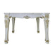 If you're tired of boring, uninspired counter dining sets, the Vendome counter height dining collection in cherry offers a refined alternative. Intricate carvings adorn the scrolled apron flanking the square wooden top of the table, while the table legs are decorated in baroque floral motifs. The matching counter height chairs share the same scrolled and floral motif carvings. In addition, the PU upholstery on these chairs are accented by a nailhead trim to enhance the traditional styling of this collection. Bring an air of sophistication to your dining area with the Vendome counter height collection.
