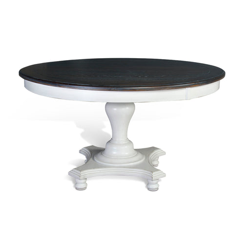 Sunny DesignsThe Marina Round table showcases a trestle base for traditional appeal as well as planked details up top for a farmhouse look. This table is made f...