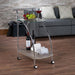 - KD, Rectangular Serving Cart Open Storage: 2 Shelves (Top Clear Tempered Glass & Bottom Wooden: Weathered Gray Oak ) Metal Frame & Handle: Chrome Finish, Metal Tube Caster Wheels